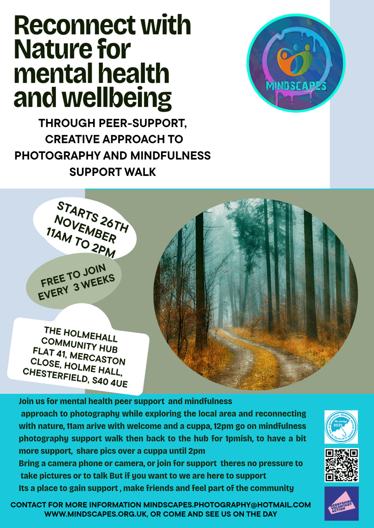 Like photography? Like finding ways to support yours and others mental health? If you live near or can get to Chesterfield Town Centre or Clay Cross areas, you'll be welcomed to Mindscapes.